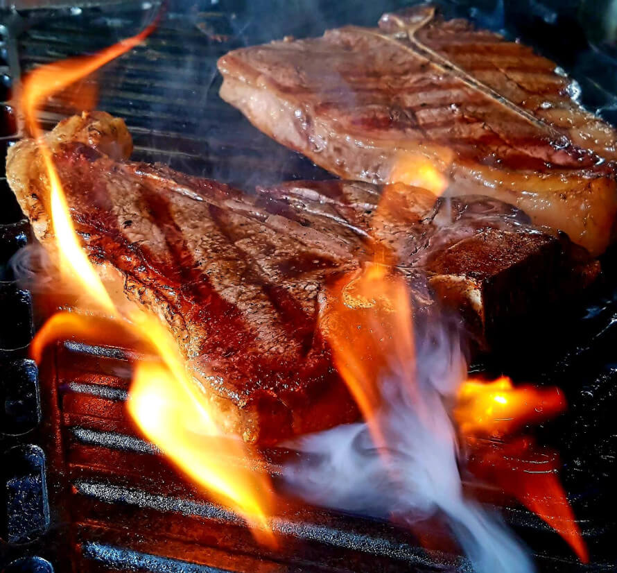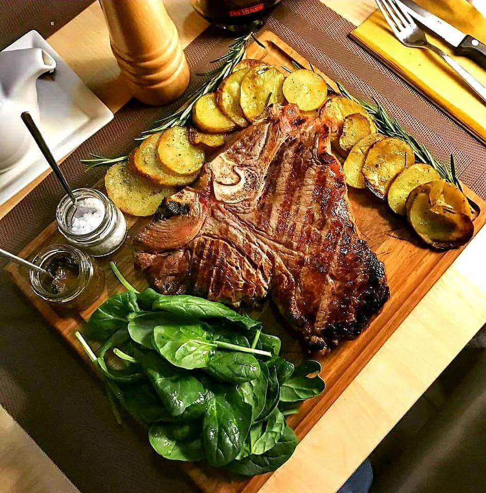 Steki T-Bone Fiorentina nie potrzebują specjalnych rekomendacji. To kulinarna klasa sama w sobie, w naszej restauracji z najwyższą precyzją staramy się oddać tradycyjny smak Toskanii do dyspozycji naszych gości. Najistotniejszym etapem przygotowywania steku T-Bone jest moment jego opiekania – Fiorentina z prawdziwego zdarzenia serwowana jest w wersji półkrwistej. Mięso powinno być soczyste w środku i miękkie.